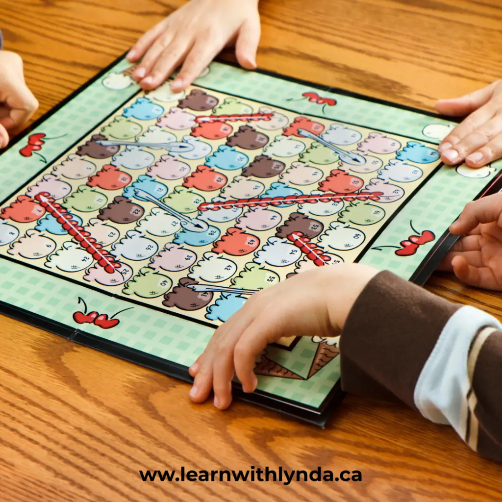 • Board games like Snakes and Ladders that include symbols, numbers, and turn-taking
