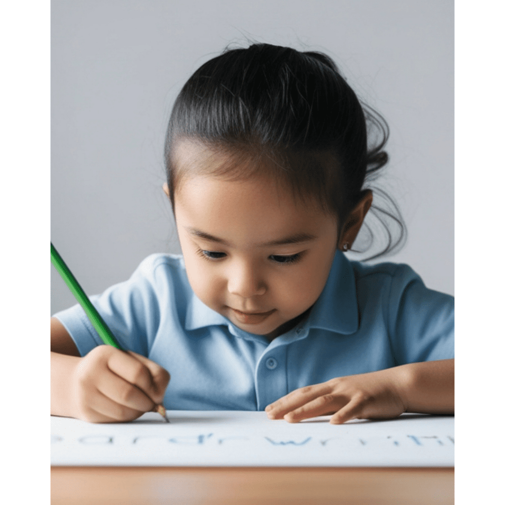 Encourage children to stretch out sounds as they write. Early spelling does not need to be perfect. What matters most is that children connect sounds to letters.